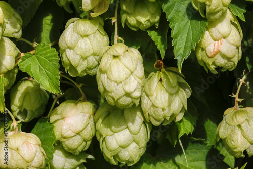 Fototapeta premium Hopfen mit Blättern an Ranken
