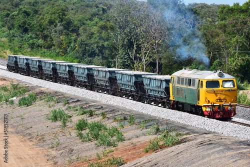 Naklejka premium Hopper-freight train by diesel locomotive on the railway in Thailand
