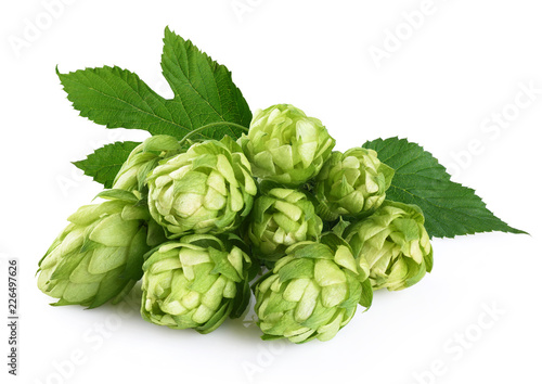 © vitals, Obraz premium Hops and hop leaves isolated on white background.