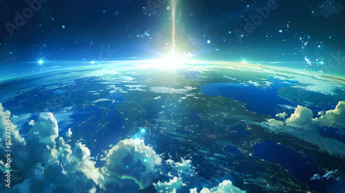 Fototapeta premium horizon nebula and comet in space style anime