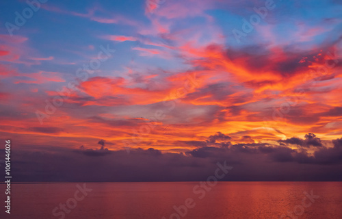 Fototapeta premium Horizon photography landscape panorama summer shore sea nobody wind wave cool holiday look calm big sunset sky twilight evening on good day time nature tropical coast beautiful ocean water travel