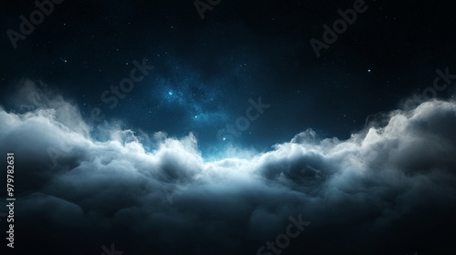 Obraz premium Horizon under starry night, clouds gently moving, serene darkness.