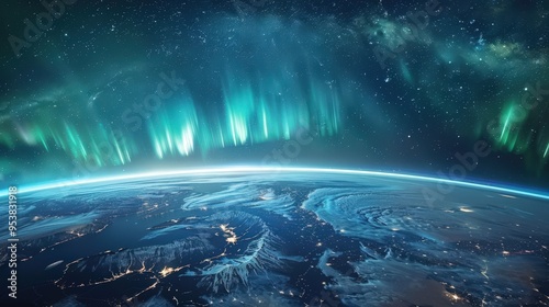 Fototapeta premium horizon with the northern lights visible above it, creating a mesmerizing blend of natural light phenomena against the curve.