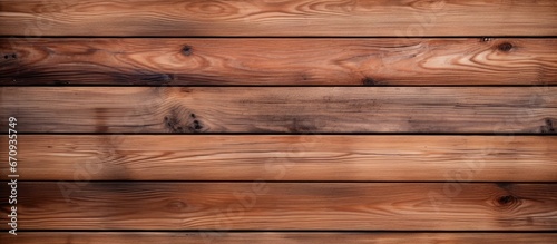 Fototapeta premium Horizontal background with textured brown wood plank wall