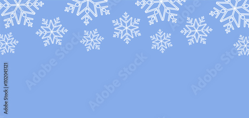 Fototapeta premium Horizontal background with white snowflakes. Christmas, New Year or simply...