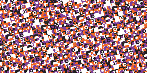 © acidmit, Obraz premium Horizontal banner with geometric pattern in grid. Trendy multicolor Bauhaus pattern background. Vector illustration EPS 10