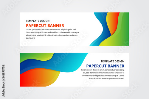 © 1234design, Obraz premium Horizontal banners with 3D abstract background, white paper cut shapes. design layout for business presentations, flyers, posters and invitations. Carving art with blue, orange, green white colors