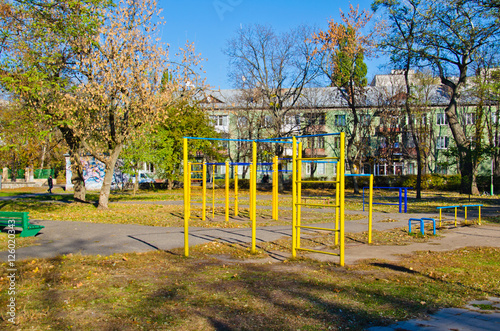 Fototapeta premium Horizontal bars on a sports ground in a park