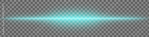© Anastasia, Fototapeta premium Horizontal blue light effect isolated on transparent background. Bright glowing beam with lens flare and soft glow. Graphical patch of reflected light. Abstract rays. Vector illustration.