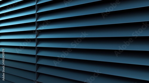 Obraz premium Horizontal blue window blinds with a modern, geometric pattern and dramatic...