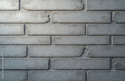 © Viktor, Fototapeta premium Horizontal close-up of grey cement block wall texture background. Rough textured brickwork design, solid construction. Modern architectural structure, weathered surface. Elegant empty interior with