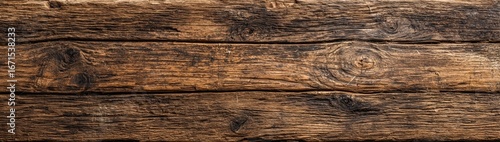 Naklejka premium Horizontal close-up of weathered, dark brown wooden planks