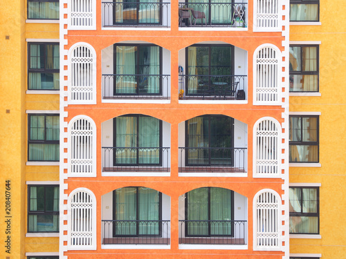 Fototapeta premium Horizontal condominium building multiple floor with balcony.