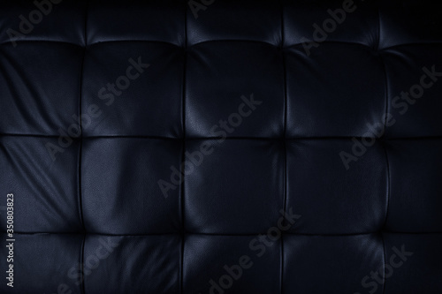 © rawintanpin, Fototapeta premium Horizontal elegant black leather texture with buttons for pattern and background.Genuine leather upholstery background for a luxury decoration in Black tones