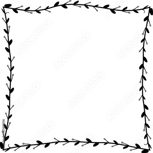 Fototapeta premium Horizontal Frame flower Wreath floral leaf borders square shape silhouette black decoration border Branch laurel wedding frames Botanical ornate Elements design badge decoration