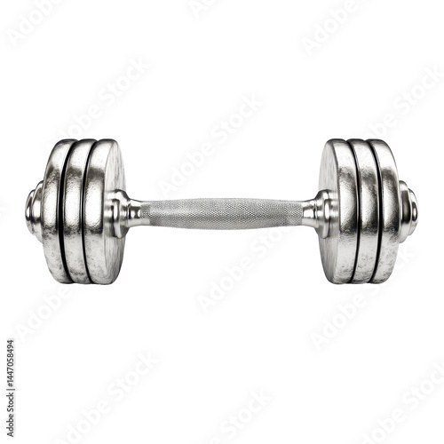 Fototapeta premium Horizontal, isolated image of a barbell with metal weights. The background is...