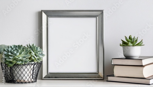 Fototapeta premium Horizontal Metal Frame Home Interior Poster Mockup with Succulents and Books...