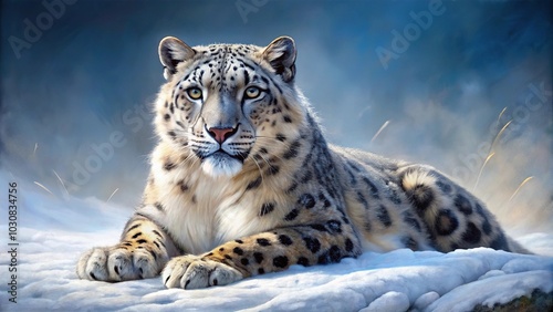 © Boy photographer, Obraz premium Horizontal oil painting of a snow leopard