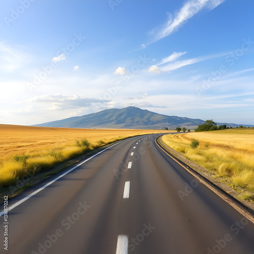 Fototapeta premium Horizontal or landscape of smooth asphalt road. On the wide grassland. There...
