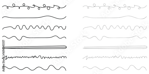 © Line Wave, Obraz premium Horizontal paintbrush element on white background. Black hand drawn underline calligraphy set. Modern simple dark lines. Isolated dark line set. EPS 10.