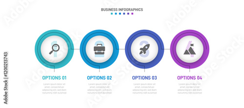 © shendart, Fototapeta premium Horizontal progress bar featuring 4 arrow-shaped elements, symbolizing the four stages of business strategy and progression. Clean timeline infographic design template. Vector for presentation