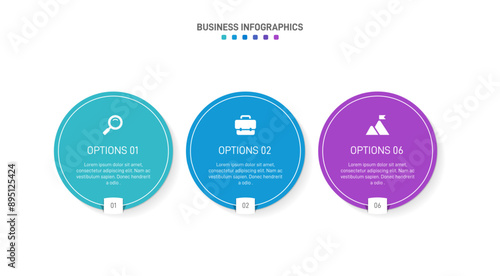© shendart, Fototapeta premium Horizontal progress bar featuring 3 arrow-shaped elements, symbolizing three six stages of business strategy and progression. Clean timeline infographic design template. Vector for presentation