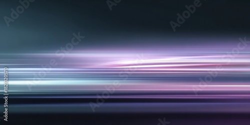 Fototapeta premium Horizontal streaks of abstract light blur across a dark, cool background.