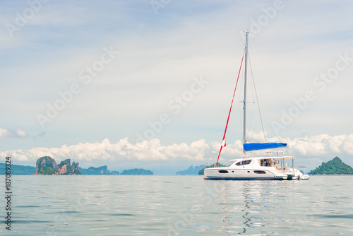 Naklejka premium horizontal toned photo - white yacht in the bay of the Andaman Sea, Thailand