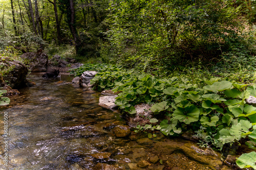 © daniele russo, Obraz premium Horizontal View of a River in a forest in a hot summer day
