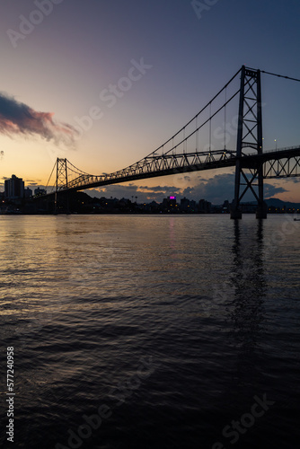 © Fotos GE, Fototapeta premium horizonte e o pôr do sol ponte Hercílio luz de Florianopolis Santa Catarina Brasil Florianópolis