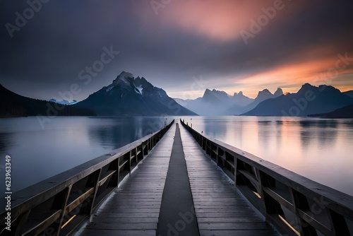 Naklejka premium horrific cold weather in the river a long bridge