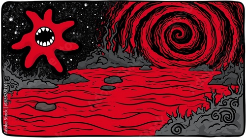 Fototapeta premium Horror fantasy adventure theme, stranger carnivorous plant starfish