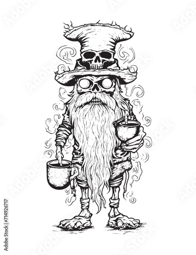 Fototapeta premium Horror gnome vector doodle illustration, coloring page for adults