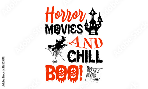 © Creative Artist, Fototapeta premium Horror Movies And Chill Boo! - Halloween T shirt Design, Hand drawn lettering and calligraphy, Svg Files for Cricut, Instant Download, Illustration for prints on bags, posters