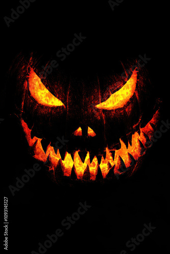 © Agnieszka, Fototapeta premium Horror-themed pumpkin with sharp teeth