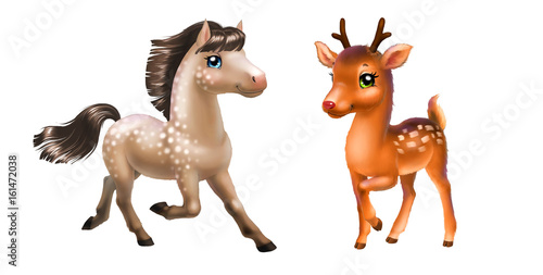 © Antracit, Naklejka premium Horse and deer isolated on white