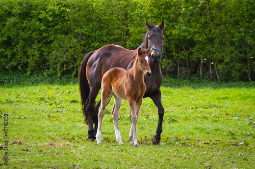 © Patryk Kosmider, Fototapeta premium Horse and the foal on the meadow