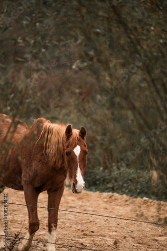 Fototapeta premium horse behind tree in natural setting and colours