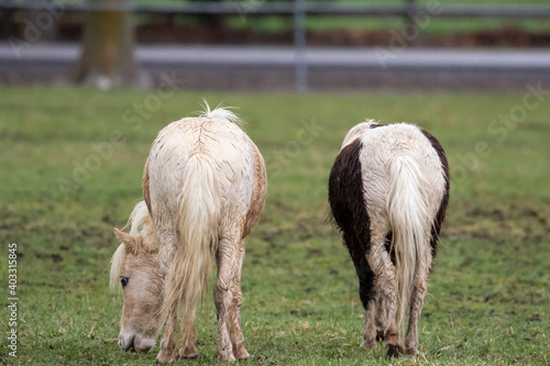 © Dylan, Obraz premium Horse Buts in the Rain, Muddy Horse Butts