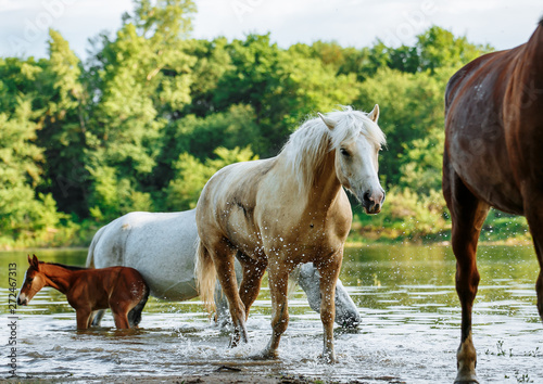 © matilda553, Obraz premium horse came to the river to drink water