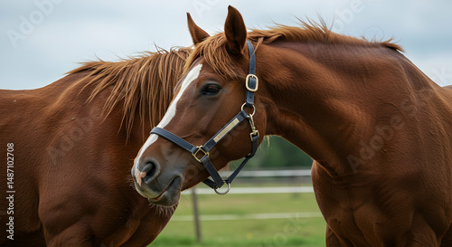 Obraz premium horse, chestnut horse, brown horse, Chestnut Horse Portrait in Pasture