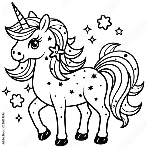 Fototapeta premium HORSE coloring book page line art outline vector illustration for kids