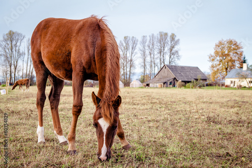 © Alex Tihonov, Obraz premium Horse feeding outdoors