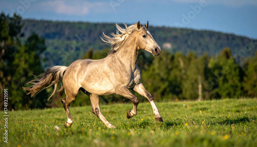 Obraz premium Horse Galloping in Meadow
