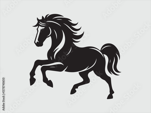 Obraz premium Horse Galloping Silhouette Running on Open Field with Strong Motion and Graceful Pose