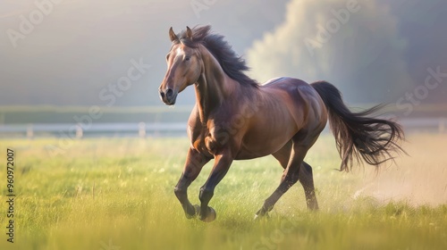 © Anak, Obraz premium Horse Galloping Through a Lush Meadow