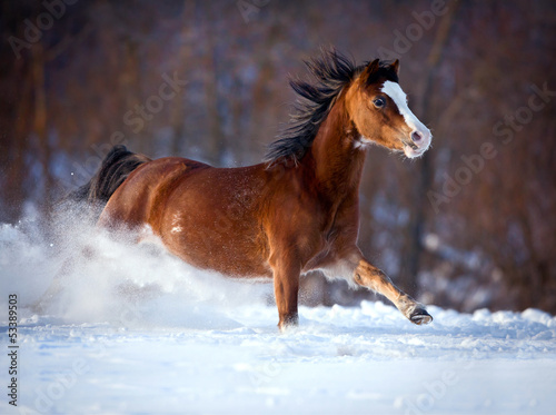 Obraz premium Horse gallops in winter.