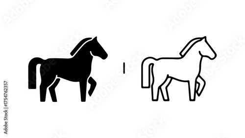 Obraz premium Horse icon set with outline and solid fill