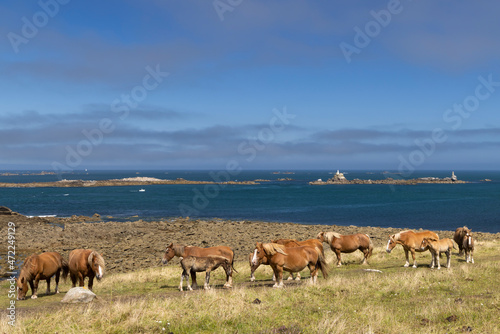 © Richard Semik, Obraz premium Horse in a field near Tremazan in Brittany, France