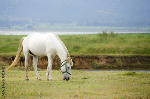 Obraz premium Horse on pasture on a daylight with a blue sky